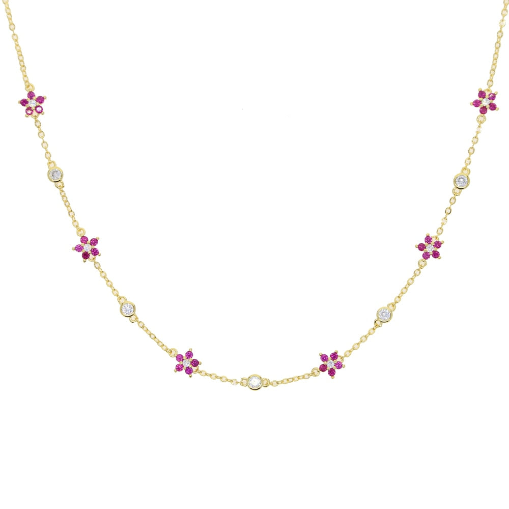 Illuminate your glow. Gorgeous and chic, our Demi Necklace is made with fuchsia pink crystal flowers on gold plating - a must-have piece for summer! For a stunning look, pair with our Chloe Earrings.