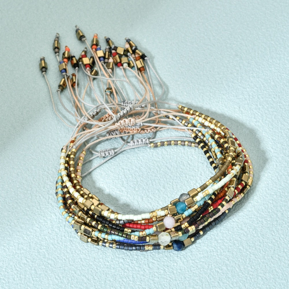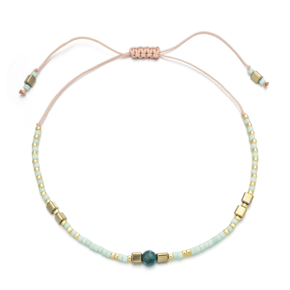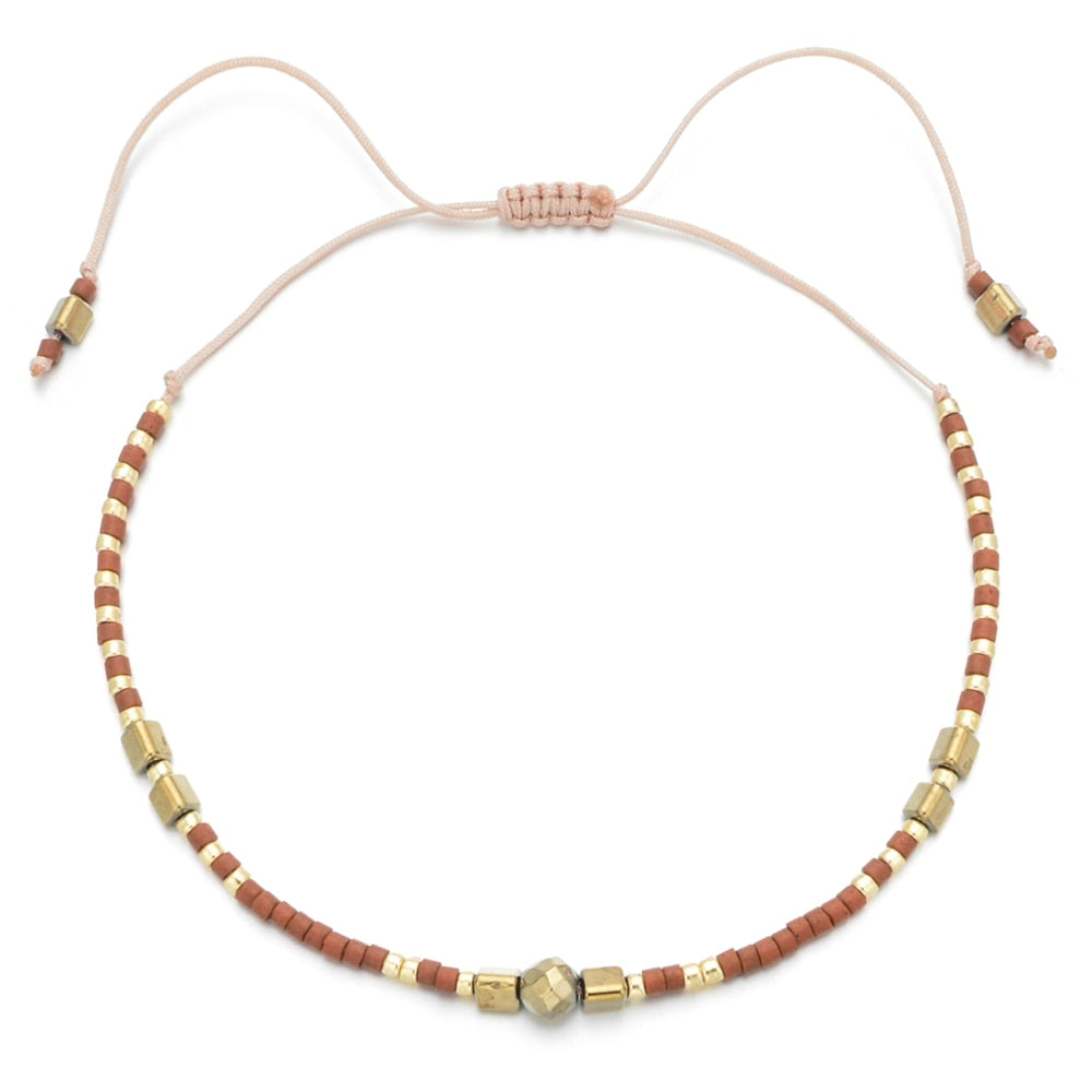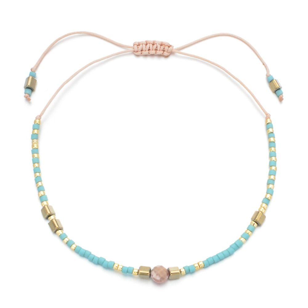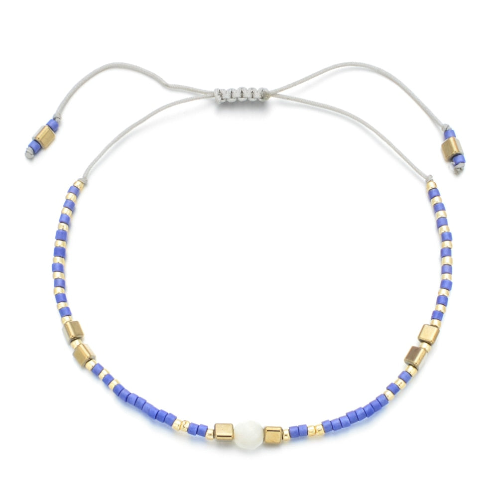 Bring out your bold! Our Nova bracelet is handmade from sapphire blue beads with gold accents and secured with a cord. Pair Nova with our Livia bracelet for an elegant look!