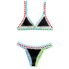 TRAVEL LOVERS, this bikini is for you! Perfect for sun-kissed beach days, our Sapphire set reverses to our Ebony set. Gently handmade from neoprene, stitched with colourful elastics and crochet trims for a hugging fit. Pair with your favourite Annes Meadow sunglasses for a glowing look!