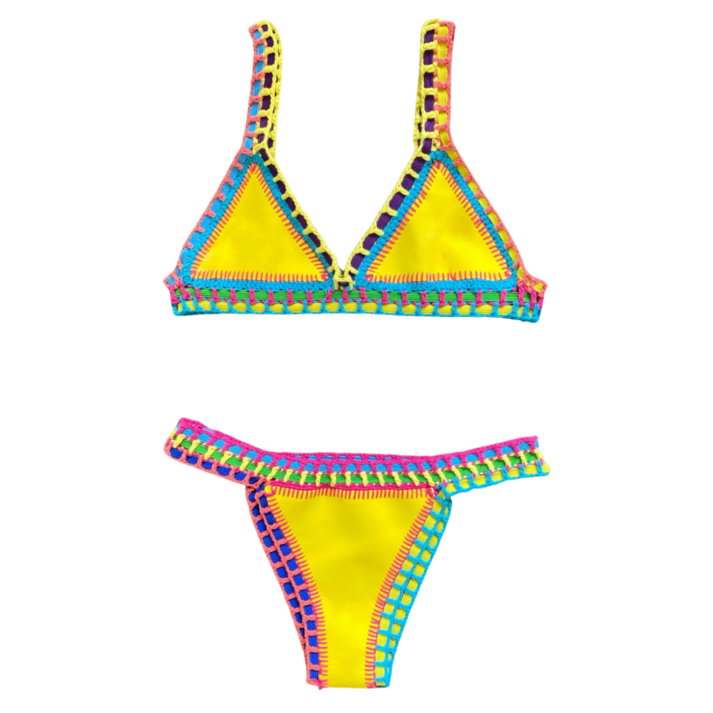 Check out our reversible bikini sets!! Our SUNRISE set reverses to our DAY GLO set!! This bright and bold set is definitely a must-have bikini for summer 2021.