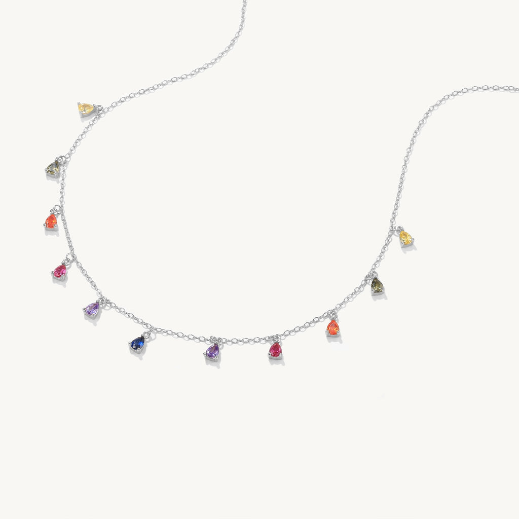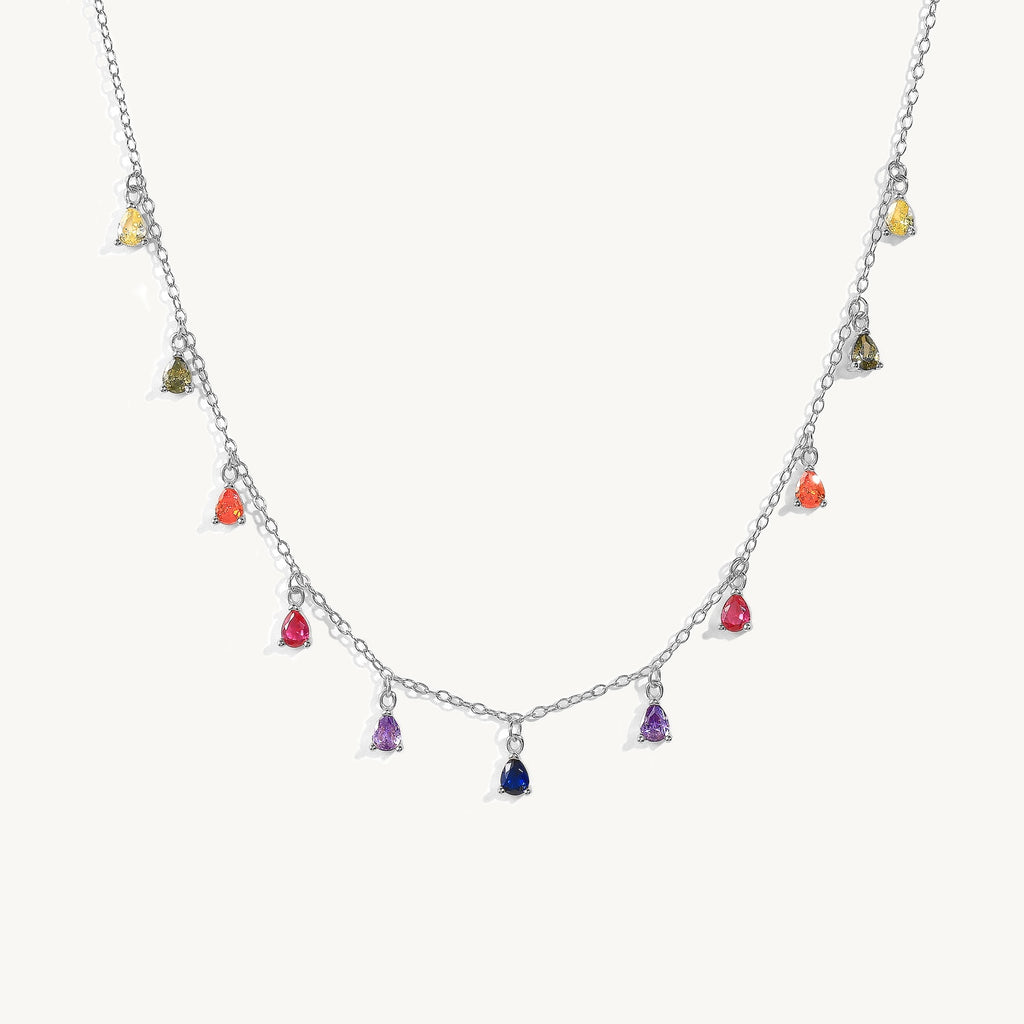 Say hi to our Jeanie Necklace! Colorful drop-shaped gemstones effortlessly embellish The 18K gold-plated link chain. An elaborate piece that will have heads turning all year round.