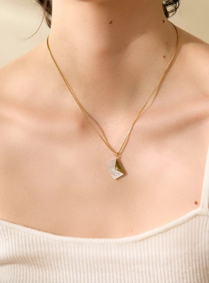 Introducing the Raven Necklace - a must-have for every 'IT' girl! Its minimal envelope pendent is carefully attached to a gold plated chain, adding a touch of elegance to any outfit. You'll definitely make a statement with this stunning piece. Did we just become best friends?